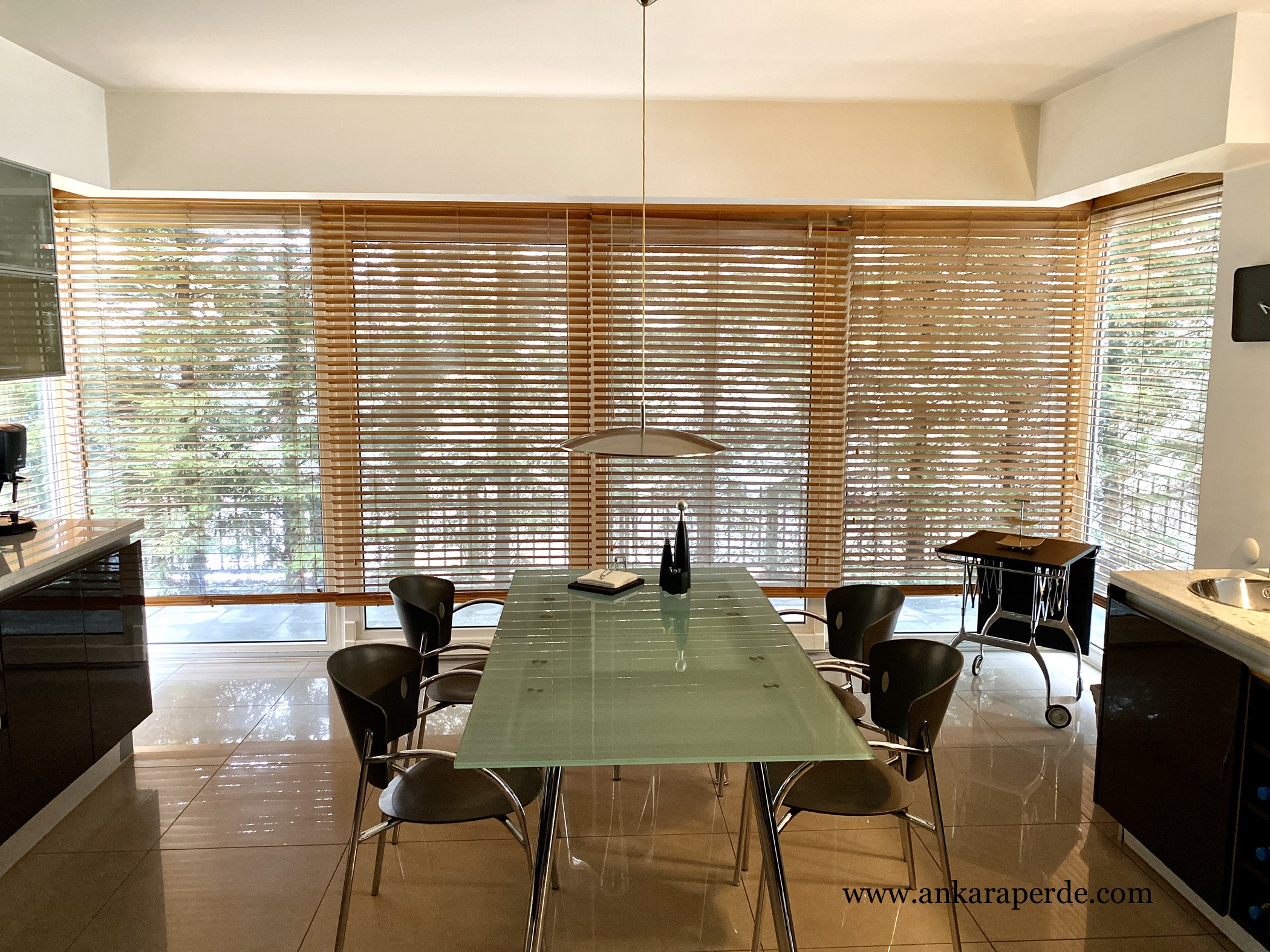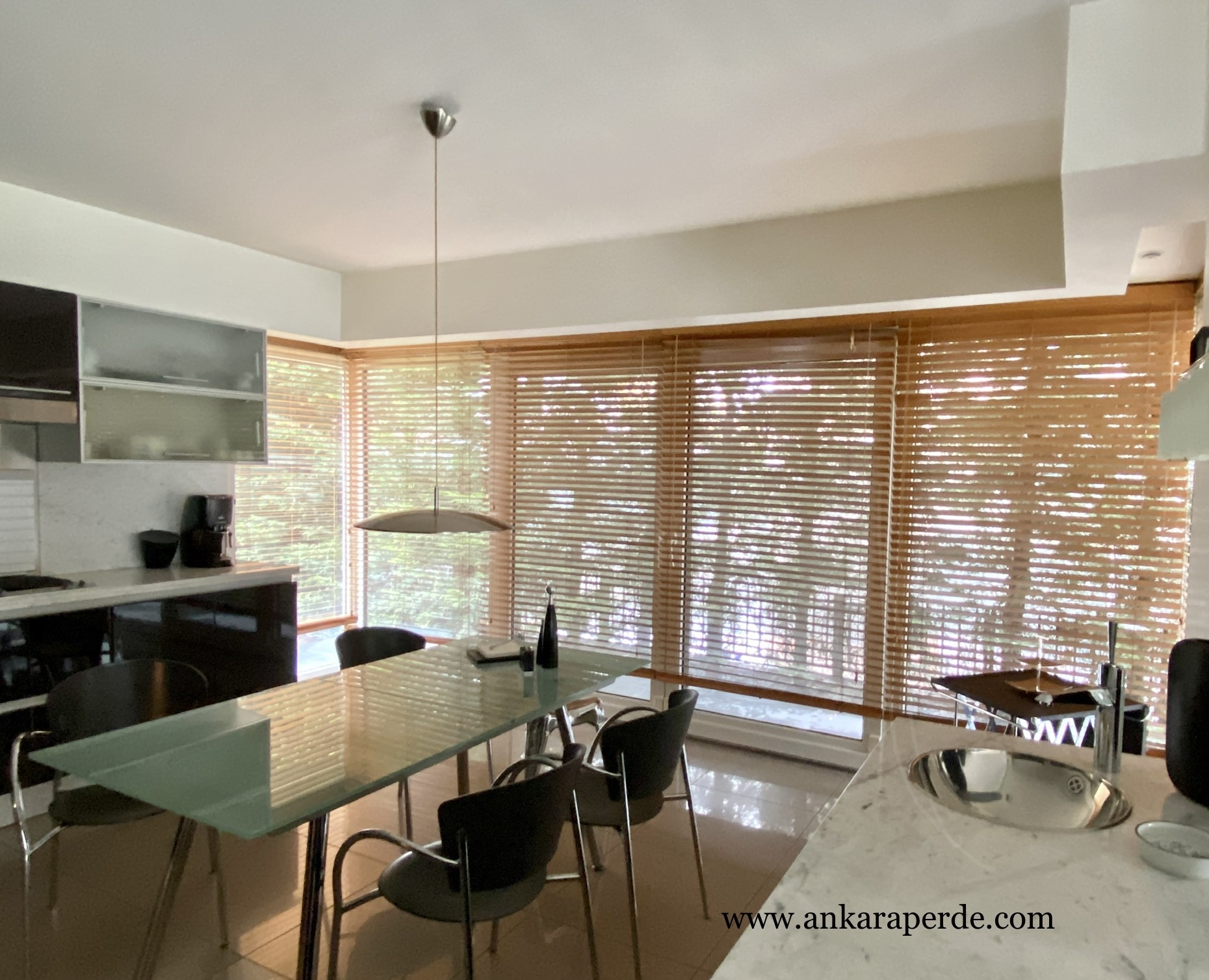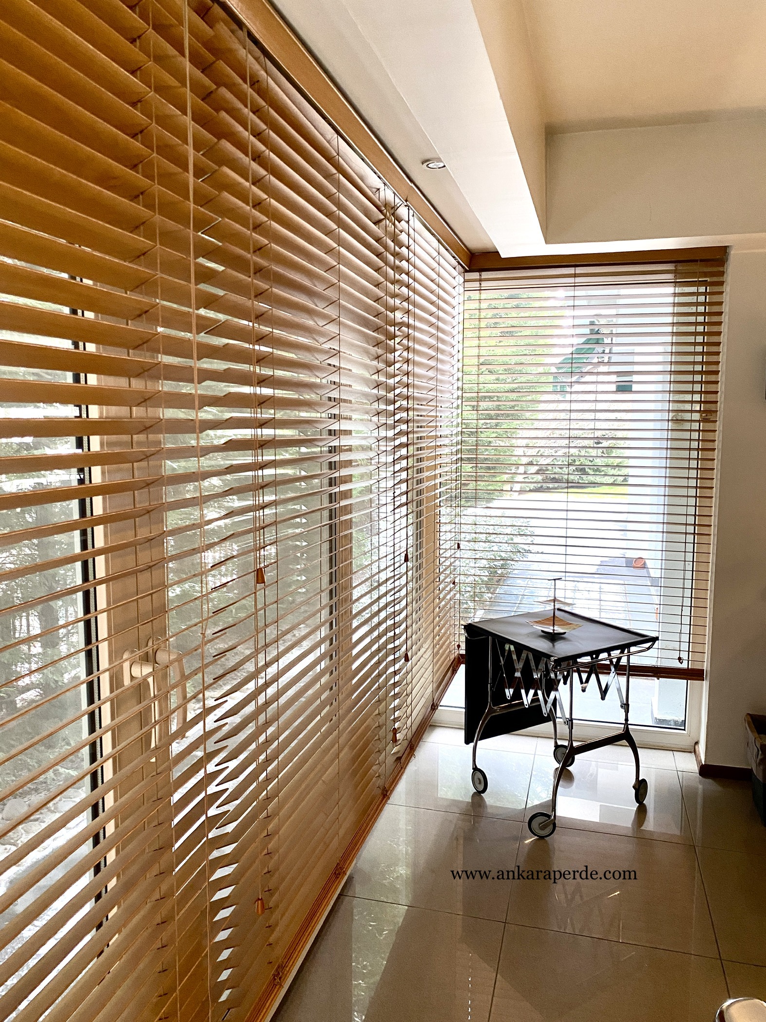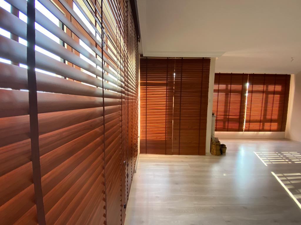 Ahşap şeritlerden oluşan perdelere verilen genel isimdir. Tül perdeye alternatif olarak iyi bir çözümdür. Bu perdeler yatay şeritlerden oluşur ve içeriyi göstermediği halde dışarıyı gösterebilen rahat bir dizaynı vardır.